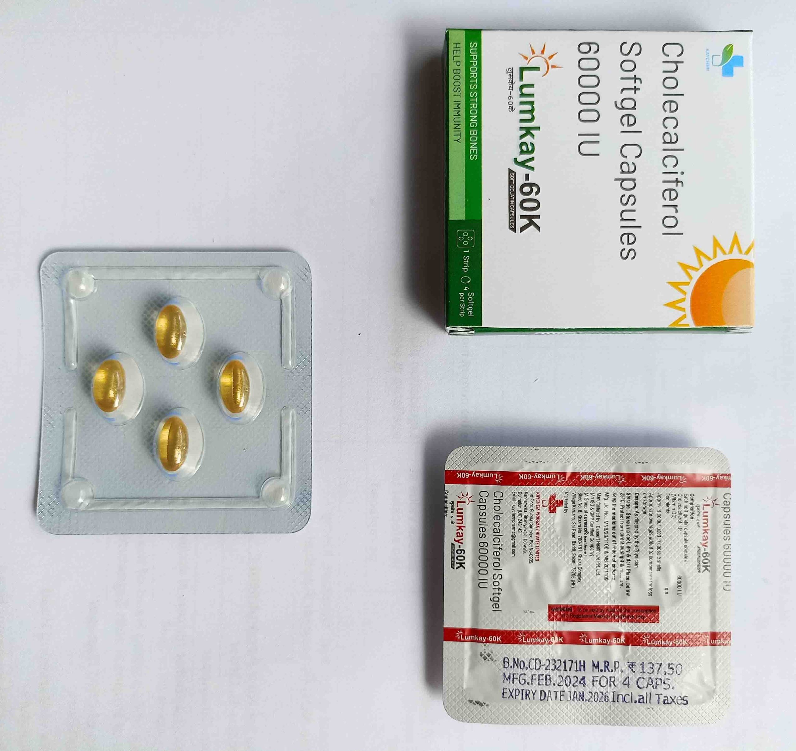 Lumkay-60K Cholecalciferol Softgel Capsules 60000 IU Category: Tablets Related products Pantrokay 40 Read more Pantrokay DSR Read more Rejukay CD3 Read more Etokay-90 Read more